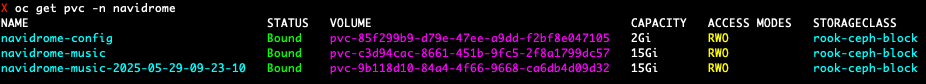 Ok the restore should be done now, and we can confirm we have a date appended PVC in the navidrome namespace.